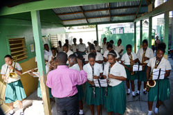En plus des matières de base du curriculum que nous avons citées plus haut, les élèves des premier et deuxième cycles fondamentaux suivent des cours d’initiation à la musique dispensés par les professeurs de l’Institut Haïtien de la Musique (IHM). Les élèves du troisième cycle fondamental apprennent à jouer d’un instrument de la famille des bois, des cuivres ou des percussions pendant deux ans et elles auront le choix de continuer la musique à partir de la 9ème année au sein de la fanfare du C.C.F.